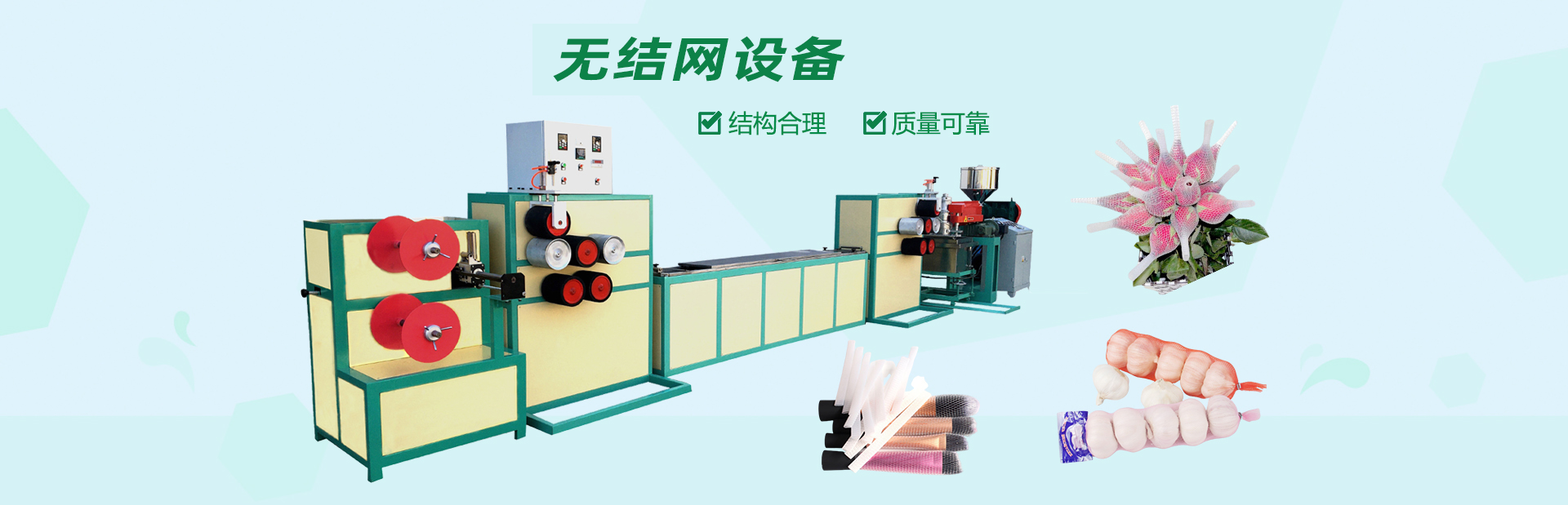 龍口市山河塑業(yè)有限公司生產(chǎn)的發(fā)泡網(wǎng)套機(jī),用于水果、蔬菜、花蕾及瓶類的外包裝。我公司具有多年的實踐經(jīng)驗和可靠的技術(shù)力量,根據(jù)市場需求開發(fā)各種規(guī)格的網(wǎng)套。每24小時生產(chǎn)蘋果網(wǎng)套80萬-120萬個,設(shè)備驅(qū)動電機(jī)采用變頻控制,調(diào)速精度高、范圍廣、能耗低、運行可靠每小時僅用電10度左右,產(chǎn)量提高。此外,該生產(chǎn)線配置不同的模頭和輔機(jī)可生產(chǎn)發(fā)泡片、發(fā)泡管、發(fā)泡棒、發(fā)泡條及異型材等產(chǎn)品。